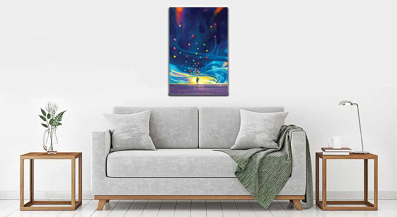 تابلو شاسی مرد تنها و بادکنکهایش کد 860